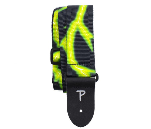 Perri's Leather Neon Green Lightning Bolt Ribbed Poly Guitar Strap LPCP-7629