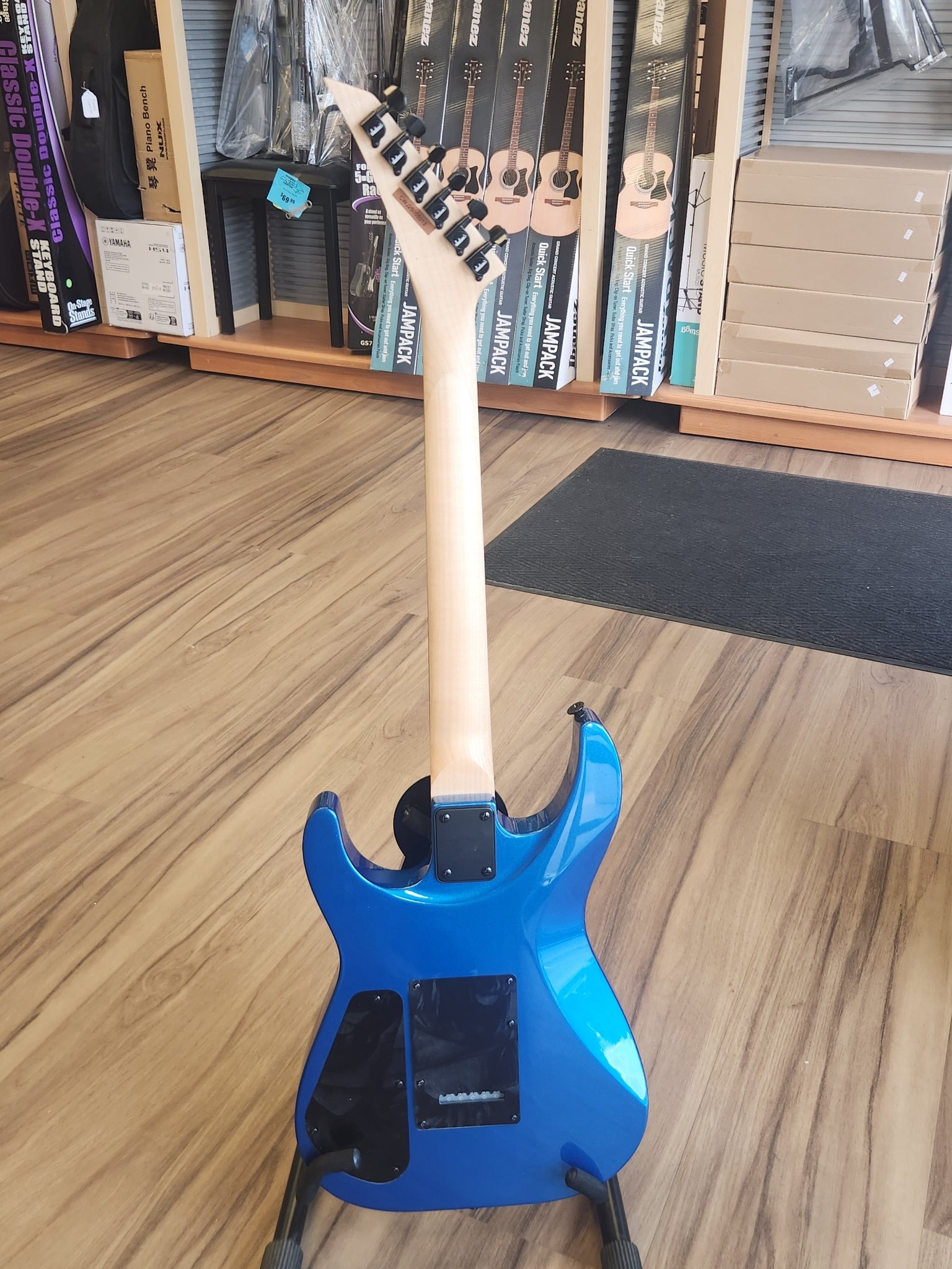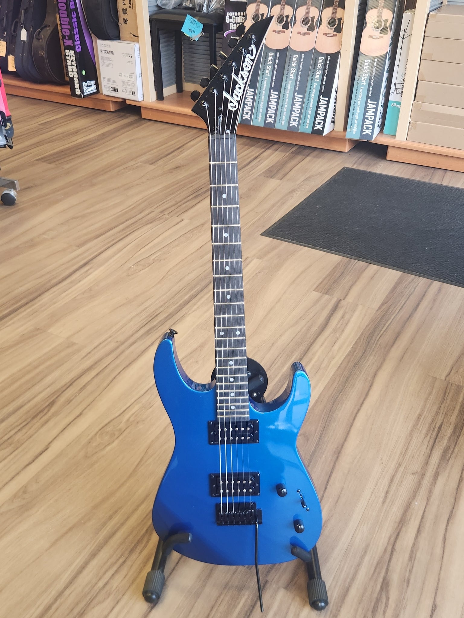 A pair of Jackson high-output humbucking pickups with ceramic magnets cranks out clear tone with plenty of girth, and can be shaped with a three-way toggle switch and single volume and tone controls.