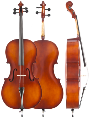A perfect school cello, very pleasant sound quality and easily played by a young student. This cello comes with a good factory adjustment, for an additional $50.00 we will install Prelude strings.